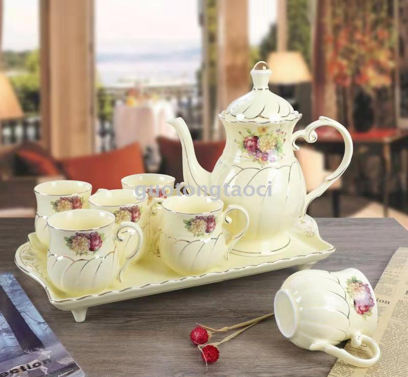 - 景德镇新款水具咖啡具带瓷托单壶陶瓷杯创意礼品