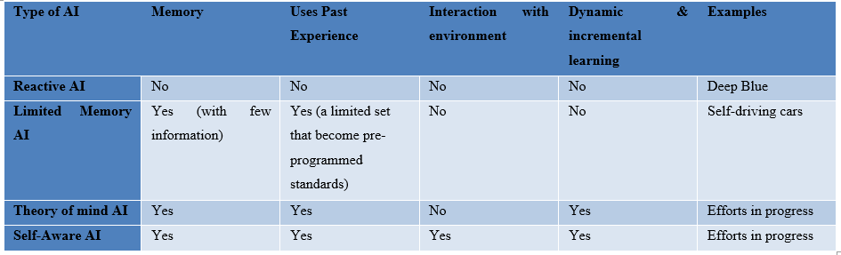 下图列出了不同类型的人工智能: