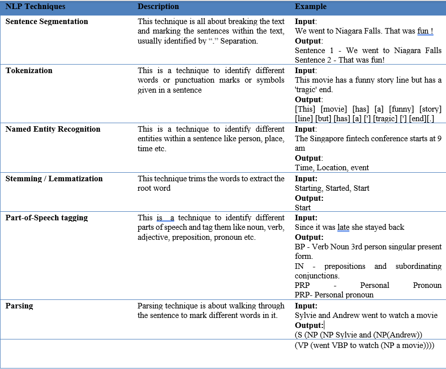 下面列出了一些基本的NLP技术及其示例: