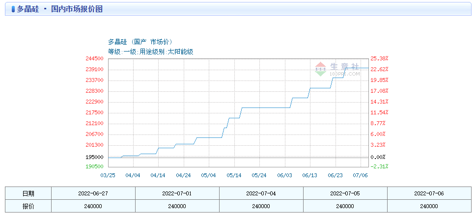 有光伏行业业内人士认为,7月份属于光伏产业长单集中签订期,受国内外光伏装机需求旺盛影响,现阶段硅料供给仍处于紧平衡状态。但三季度硅料价格趋势性下行将成为必然要求。