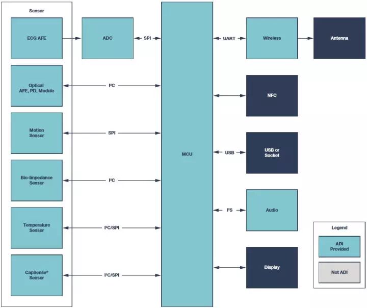 智能可穿戴医疗保健设备有多种类型,如腕带、手表、眼镜和其他可穿戴类型。执行的功能有计步器、心率监测、运动记录、生物电位测量、生物阻抗测量、血氧测量等等。