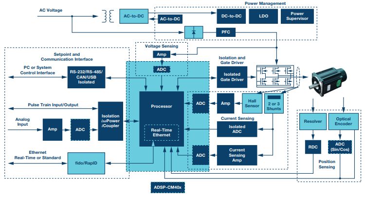 伺服电机控制解决方案(针对电机控制解决方案,ADI提供了门类齐全的产品组合,其中包括了模数/数模转换器、放大器、嵌入式处理器、iCoupler