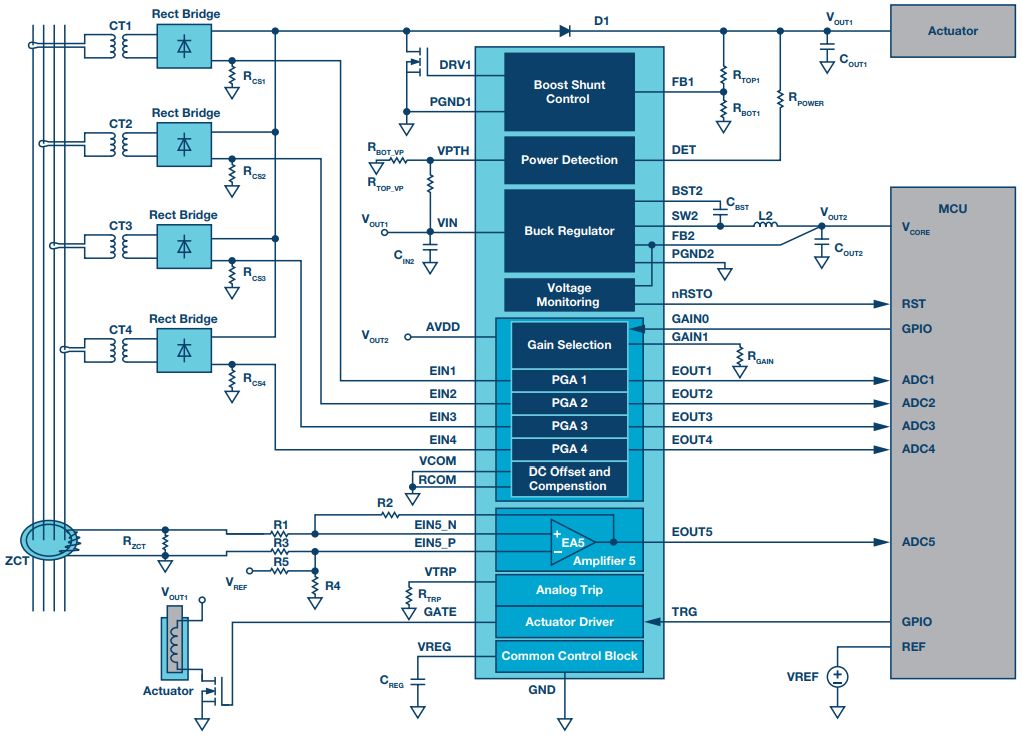 ADI公司低压断路器应用中的电子脱扣器(ETU)解决方案(电子脱扣器(ETU)是用于测量和监测流过低压断路器(MCCB和ACB )电流并在特定的时候发出脱扣信号的可编程装置。在现代低压配电系统中,需要更多通信/智能功能来实现更高级别的系统特性(例如区域联锁),因此基于微处理器的电子控制单元在低压开关设备/断路器系统中变得越来越流行。ADI提供了一种简单的系统解决方案。)