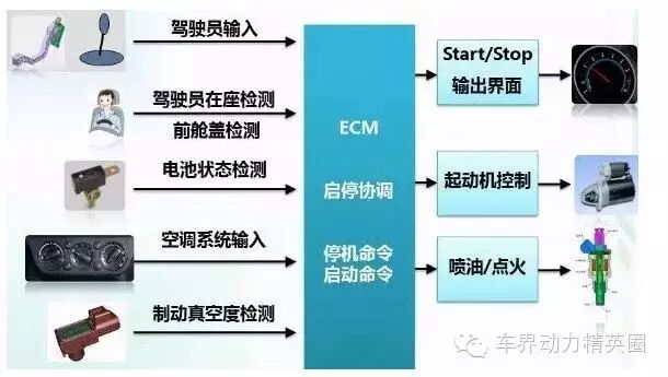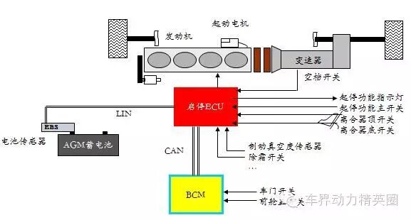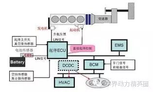 (2)另外一部分是起停系统配合模块,包括车身控制模块(BCM)、组合仪表(ICM)、空调系统(HVAC)、座椅通风模块、电动助力转向系统(EPS)、发动机管理单元(EMS)