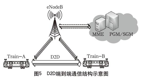 在D2D通信模式下,通信数据直接在两列车之间传输,避免了数据经过网络中转传输而产生的信息延时;其次,传统无线通信网络对通信基础设施的要求较高,核心网设施或接入网设备的损坏都可能导致通信系统的瘫痪。D2D通信的引入使得列车终端在无线通信基础设施损坏或者在无线网络的覆盖盲区时仍可实现端到端通信。
