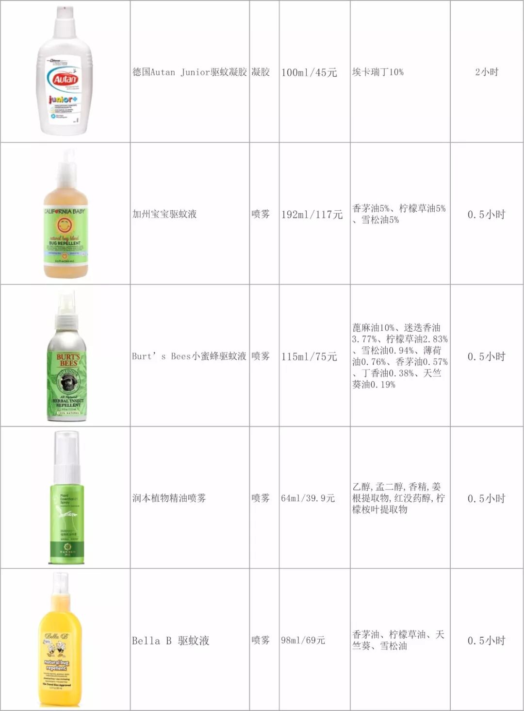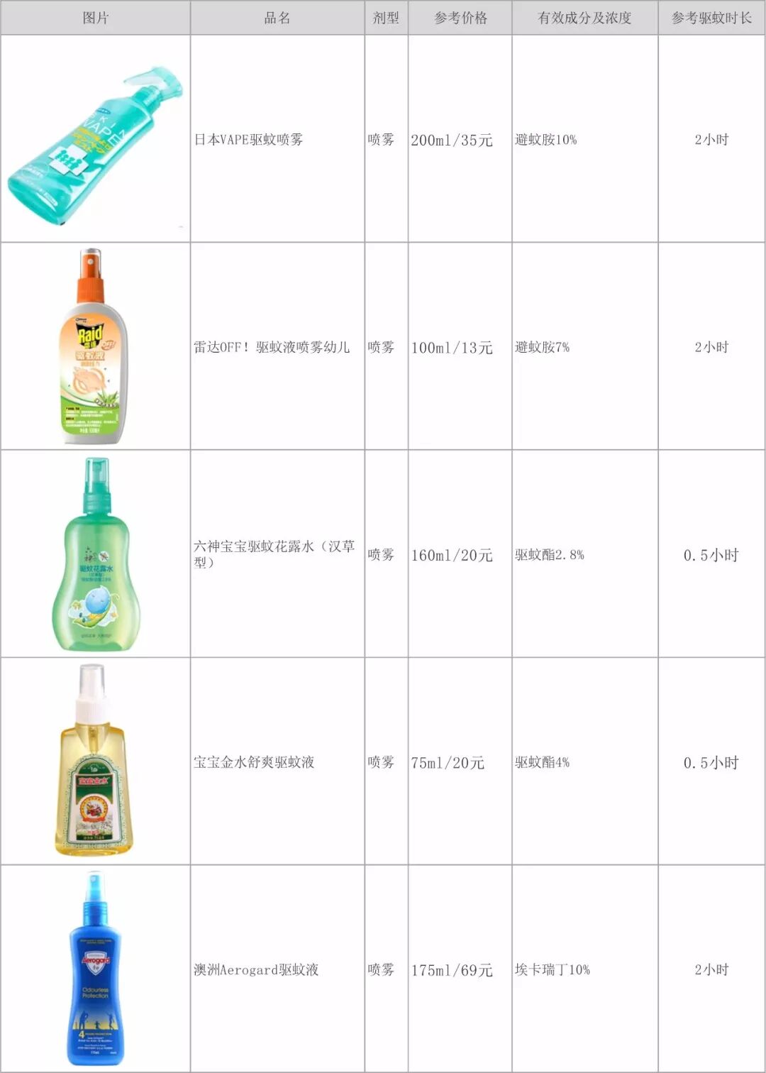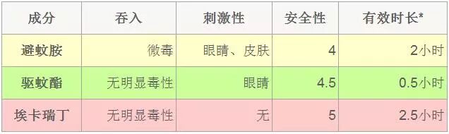 从上表中能看出来, 目前有效且最安全的是最后一个驱蚊成分
