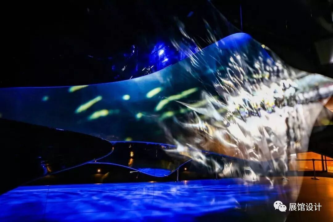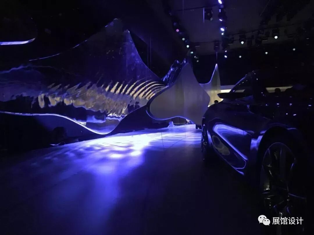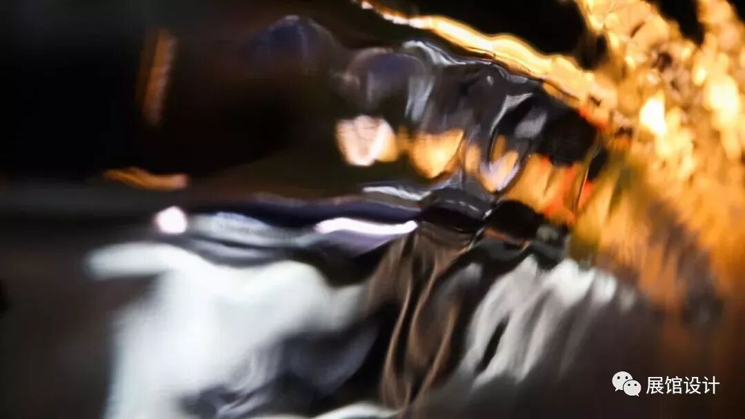 初步入展厅,人们就像准备要撞入一个远离现实的空间,神秘、引人遐想。随着小径缓步前行,看到 波光粼粼 形态飘逸的水晶镜片从不同层次置入空间,像山、似云、又仿佛是流水;展厅每一处角落的蜿蜒辗转,步移景换;光影随之变幻,让人分不清界限。