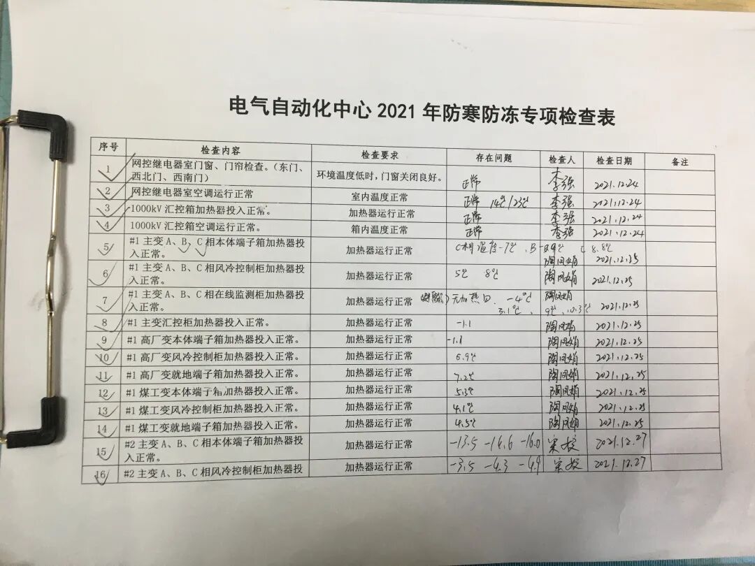 近日,设备部电气自动化中心对辖区内设备进行全面排查,制定详实检查内容,项目细化到元件,责任落实到人,将设备防寒防冻工作落实处。(陶凤娟)