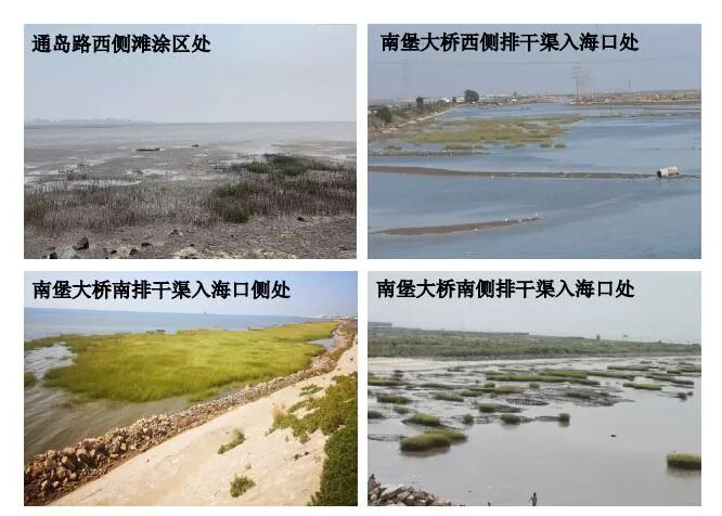 ▲互花米草清理工程(南堡大桥东侧排干渠入海口西侧处)修复前