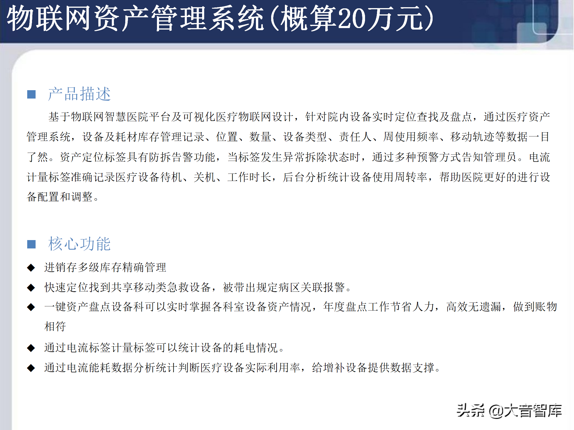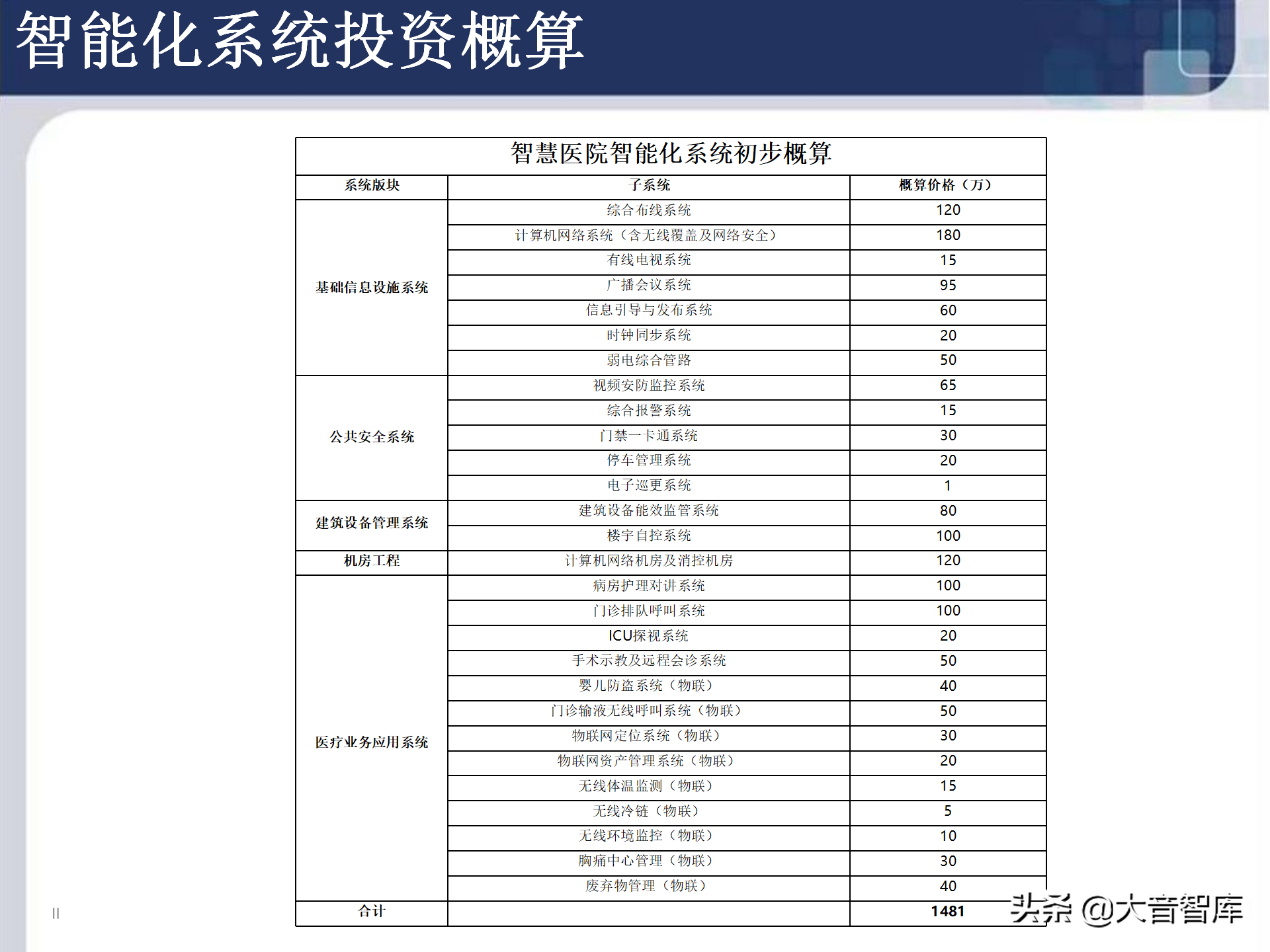 五星级医院智能化资料! 本资料详细介绍了智慧医院的智能化系统方案,并且给出了智慧医院智能化系统的初步概算,可以作为一份正式的项目方案和报价单,强烈建议做医院智能化的朋友收藏!