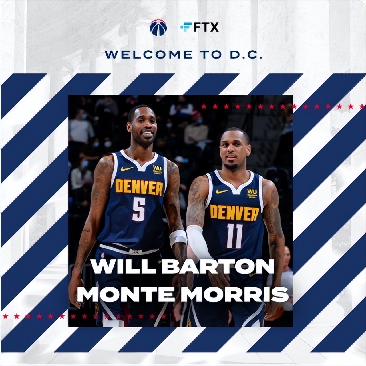官方宣布,奇才与掘金正式达成交易,蒙特-莫里斯和巴顿加盟华盛顿,波普和伊斯梅尔-史密斯加盟丹佛。2021-22赛季,巴顿场均14.7分4.8篮板3.9助攻,莫里斯场均12.6分3篮板4.4助攻。波普场均13.2分3.4篮板1.9助攻,史密斯场均6.3分2.2篮板3.8助攻。