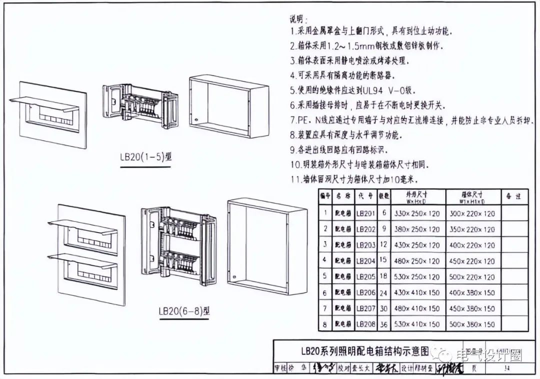 (3)照明配电箱尺寸和极数: