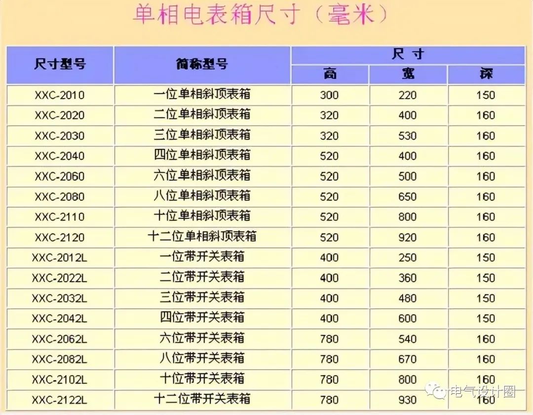 ▲ 单相电表箱尺寸