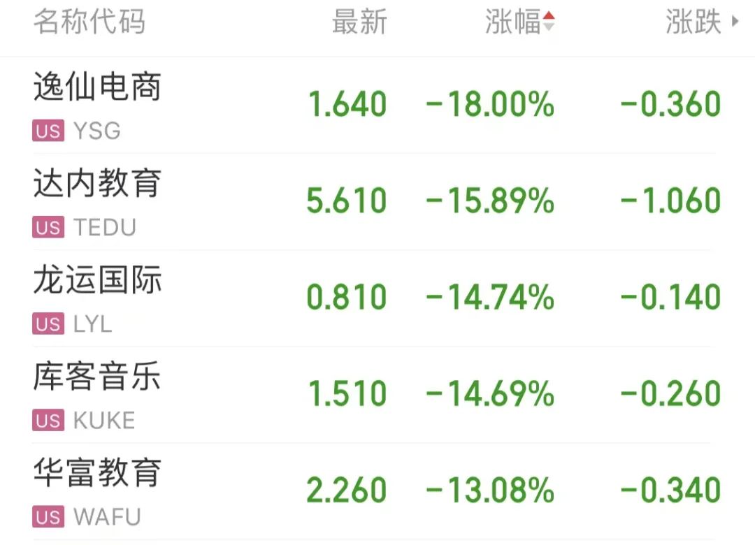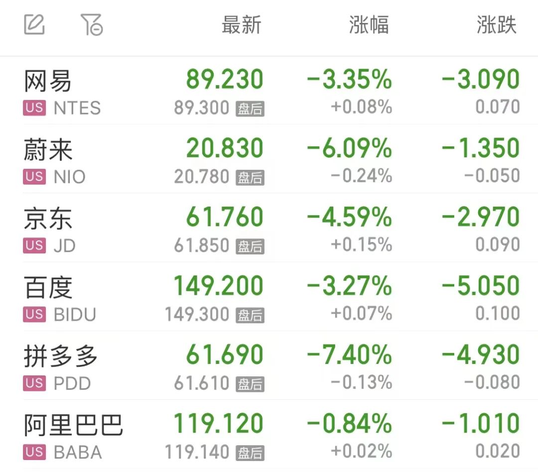 热门中概股多数下跌