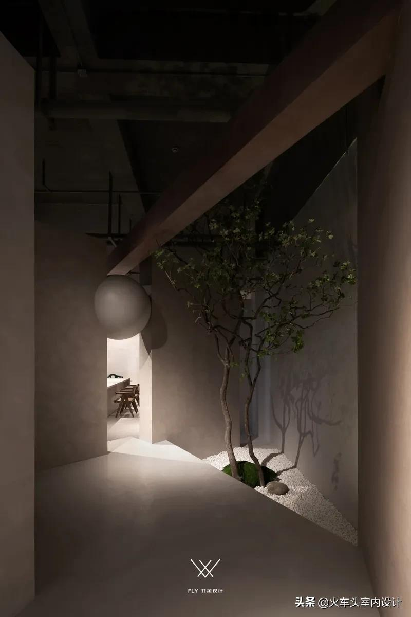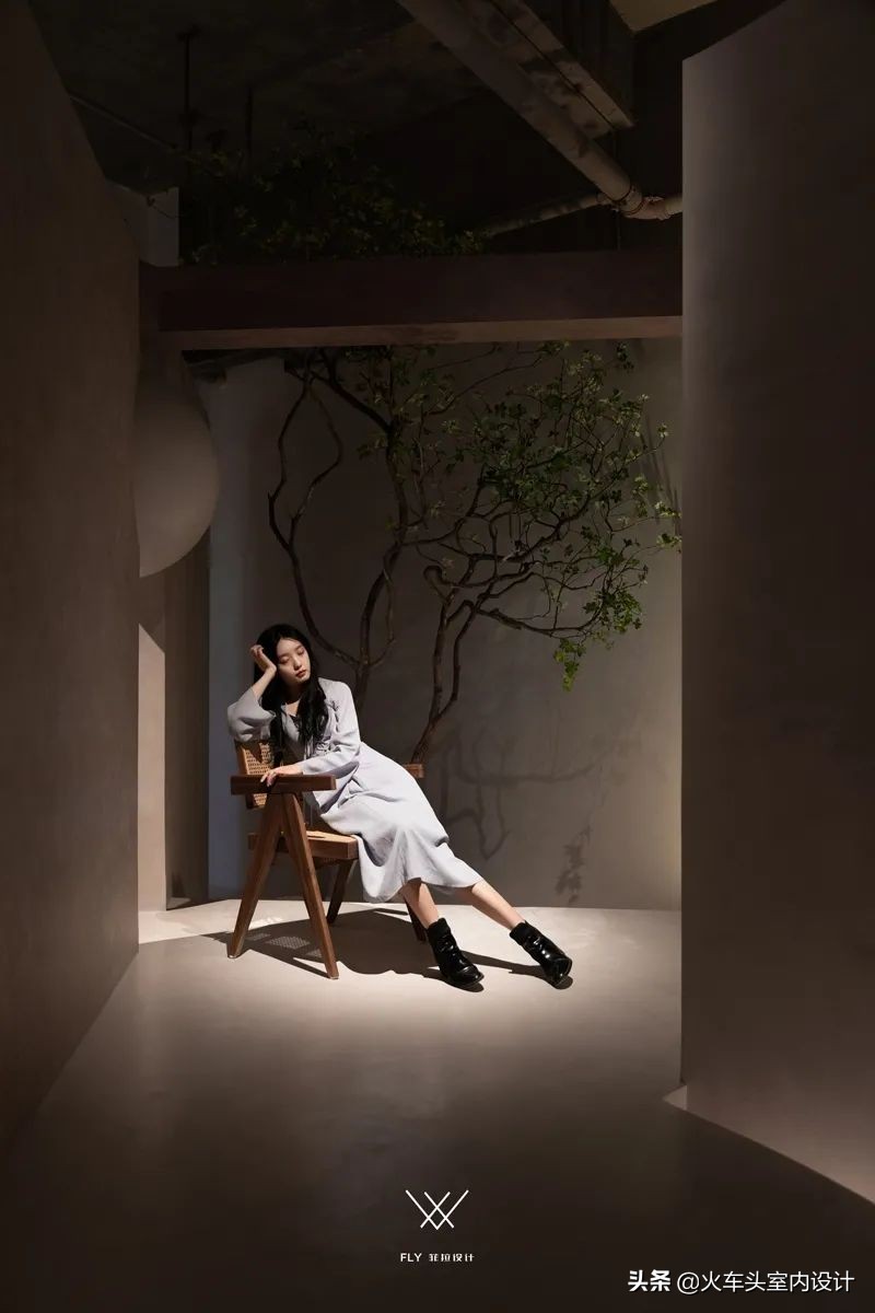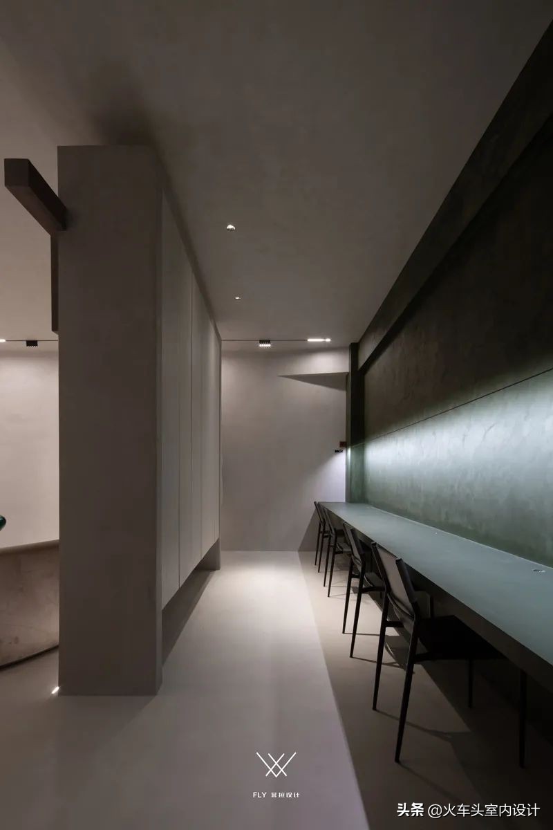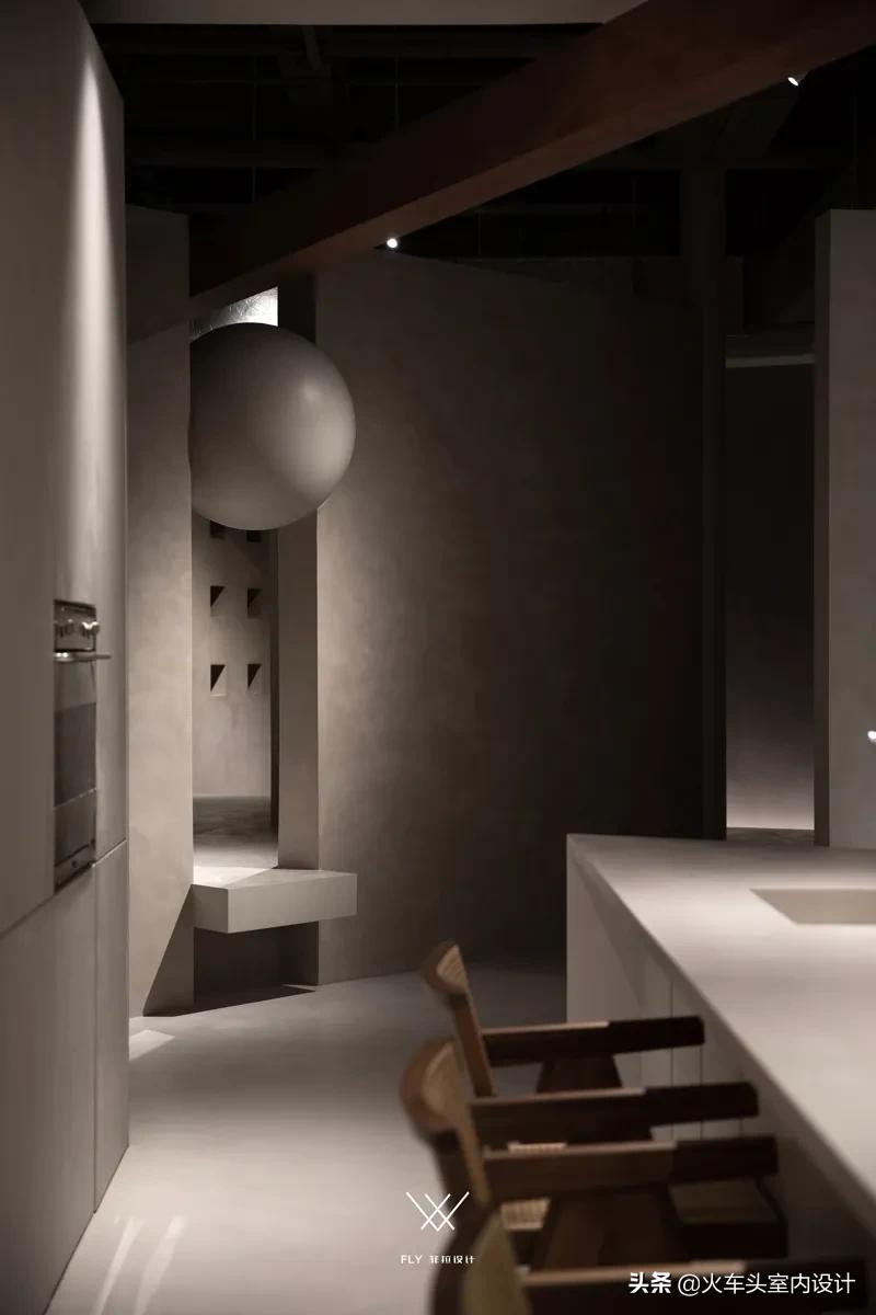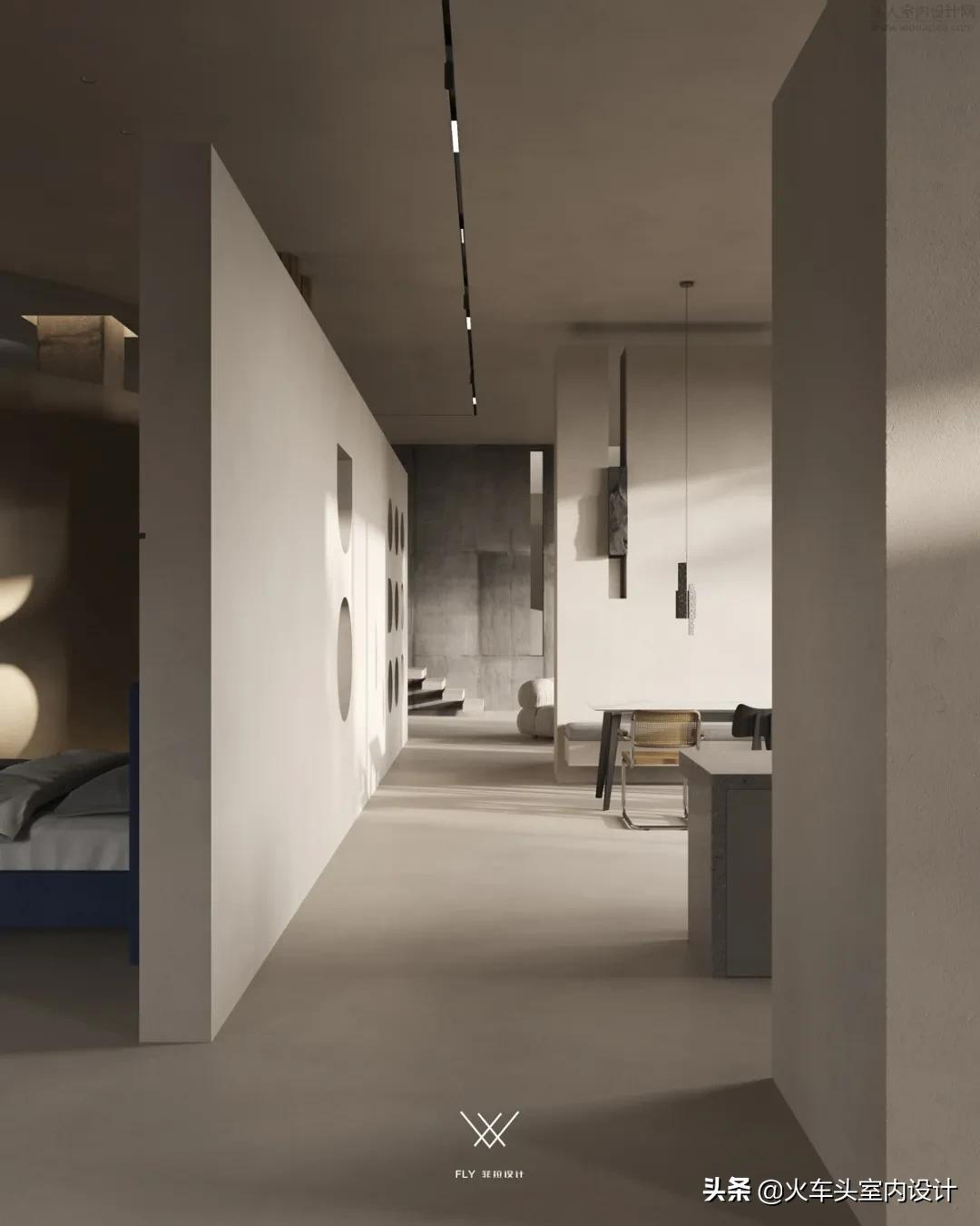 悬空不规则几何,结合微水泥带有的独特质感,打造一个自由舒张、不受束缚的空间形态。