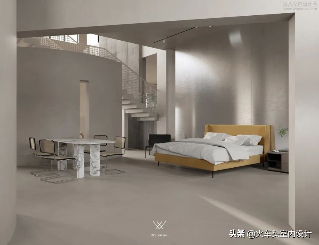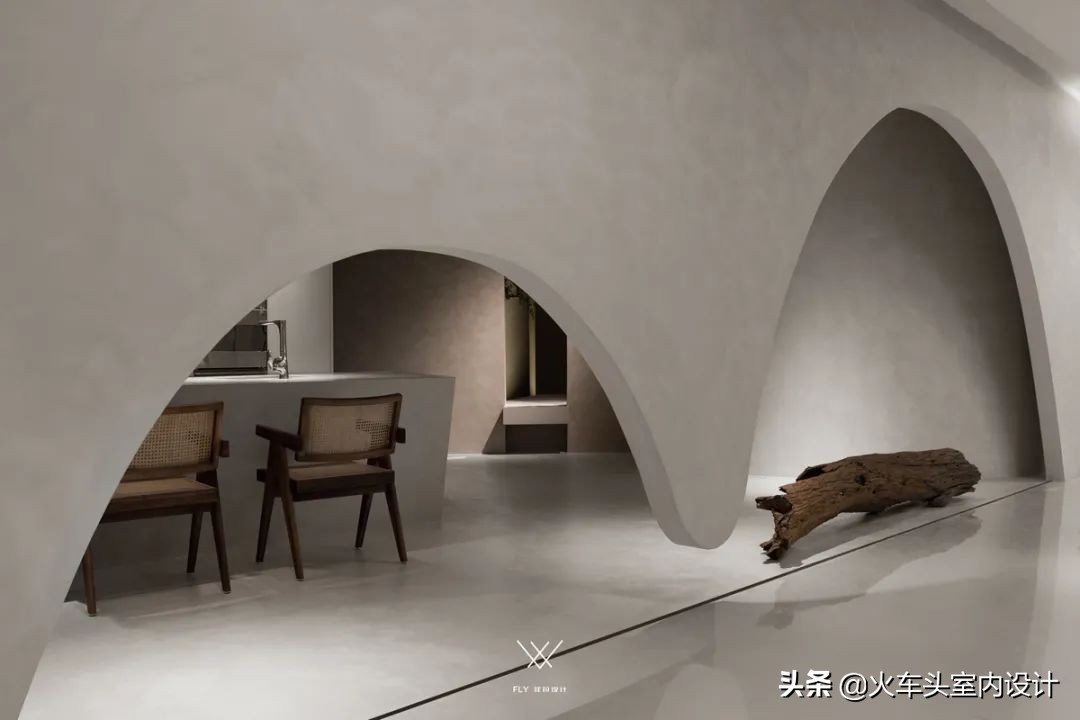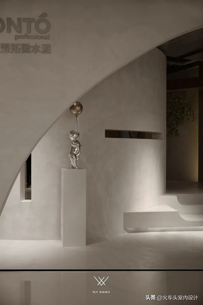 空间结构洒脱流畅、环环相扣,摆脱传统材料的限制,微水泥独一无二的艺术感及其强附着力,可以将各个空间、造型、完美地结合在一起,其他材质难以比拟,达到无缝衔接的魅力。