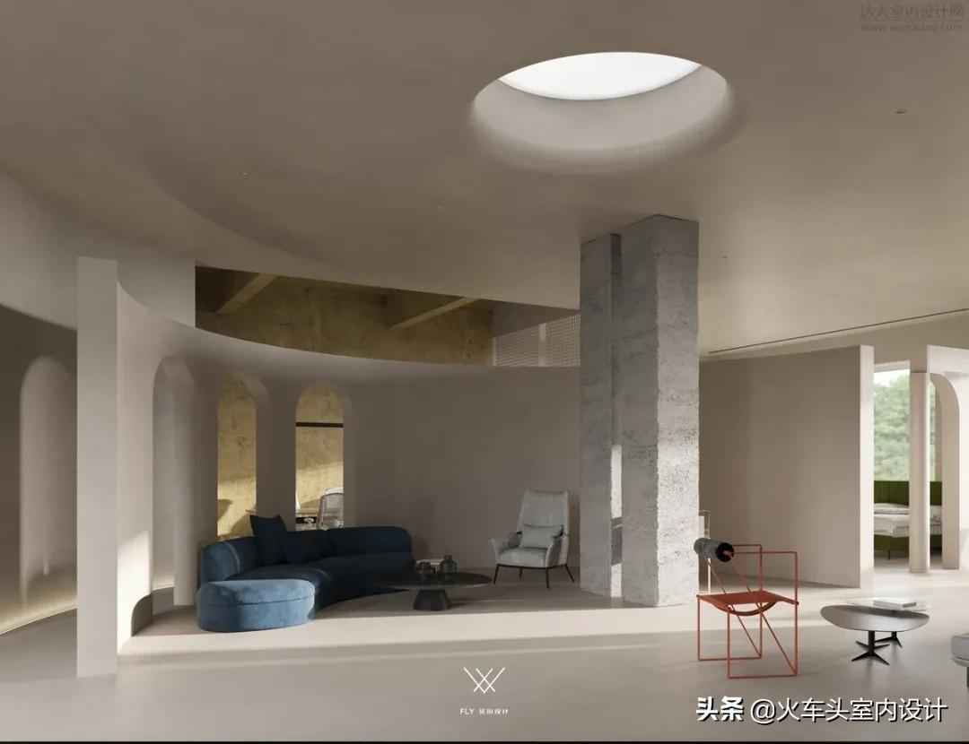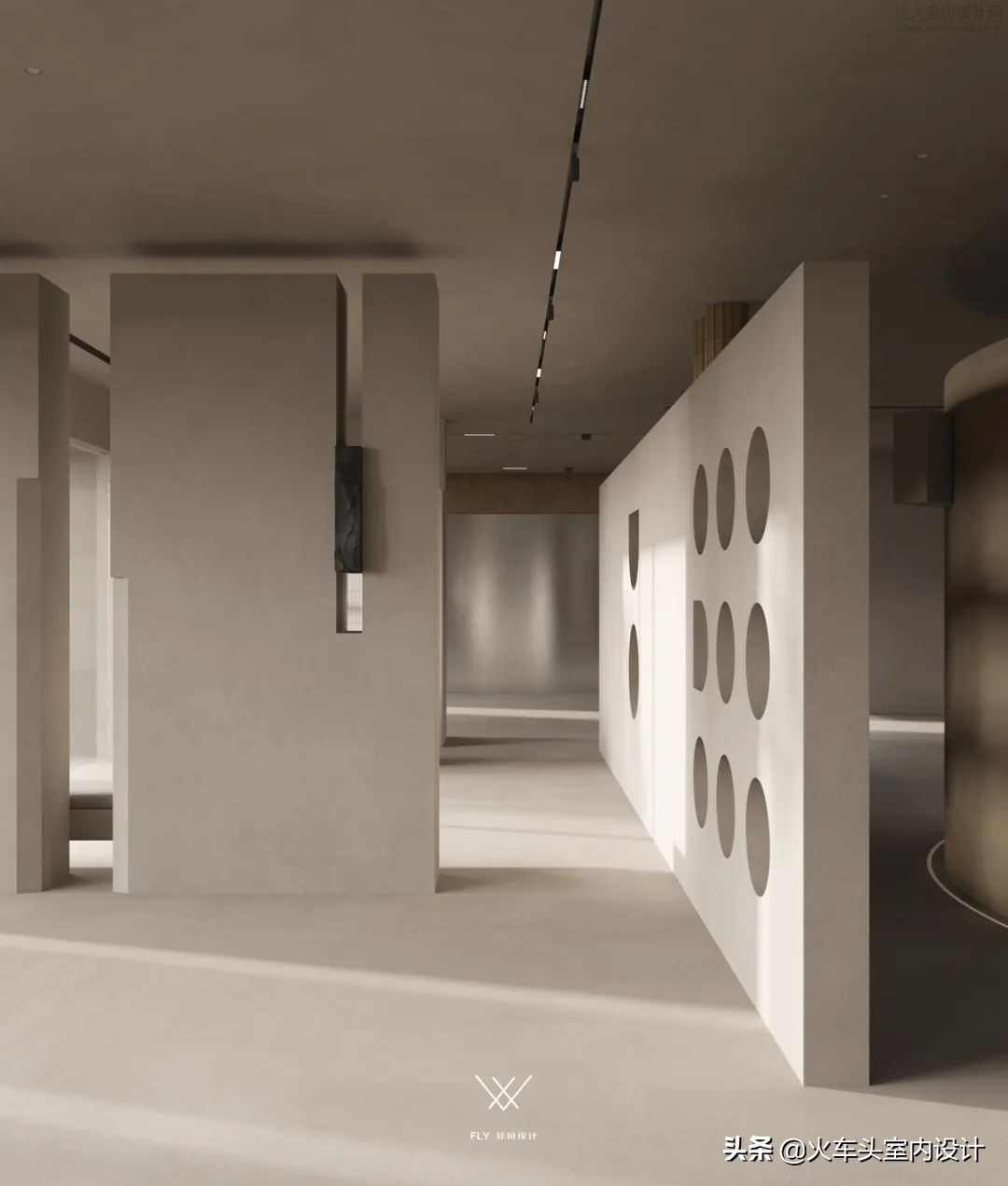 门洞多形异面形态构建外露框架,主次分明的动线规划,不束缚于单一入口的多轨迹线路,守常规逻辑不失灵感性自由。