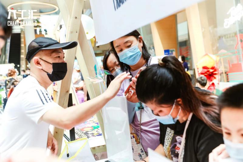 在六工汇购物广场西中庭,集创意、创新、时尚、青春、亲子为一体的创客文化交流中心闪耀集市吸引很多顾客前来参与,各类手作体验活动人气儿最旺,活动将持续至7月13日。
