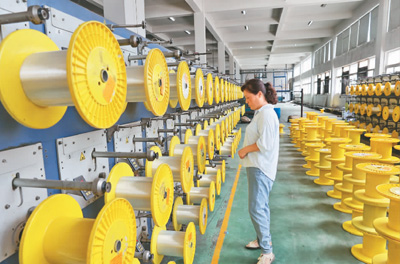 江苏南通新帝克单丝科技公司是国家级专精特新小巨人企业,为确保出口订单产品及时交付,工人正在车间忙碌。许丛军摄(人民视觉)