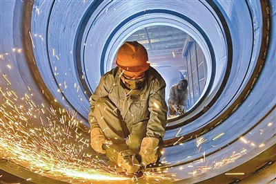 北京市专精特新小巨人企业——天海工业的工人在加紧生产LNG储罐。本报记者 贺 勇摄