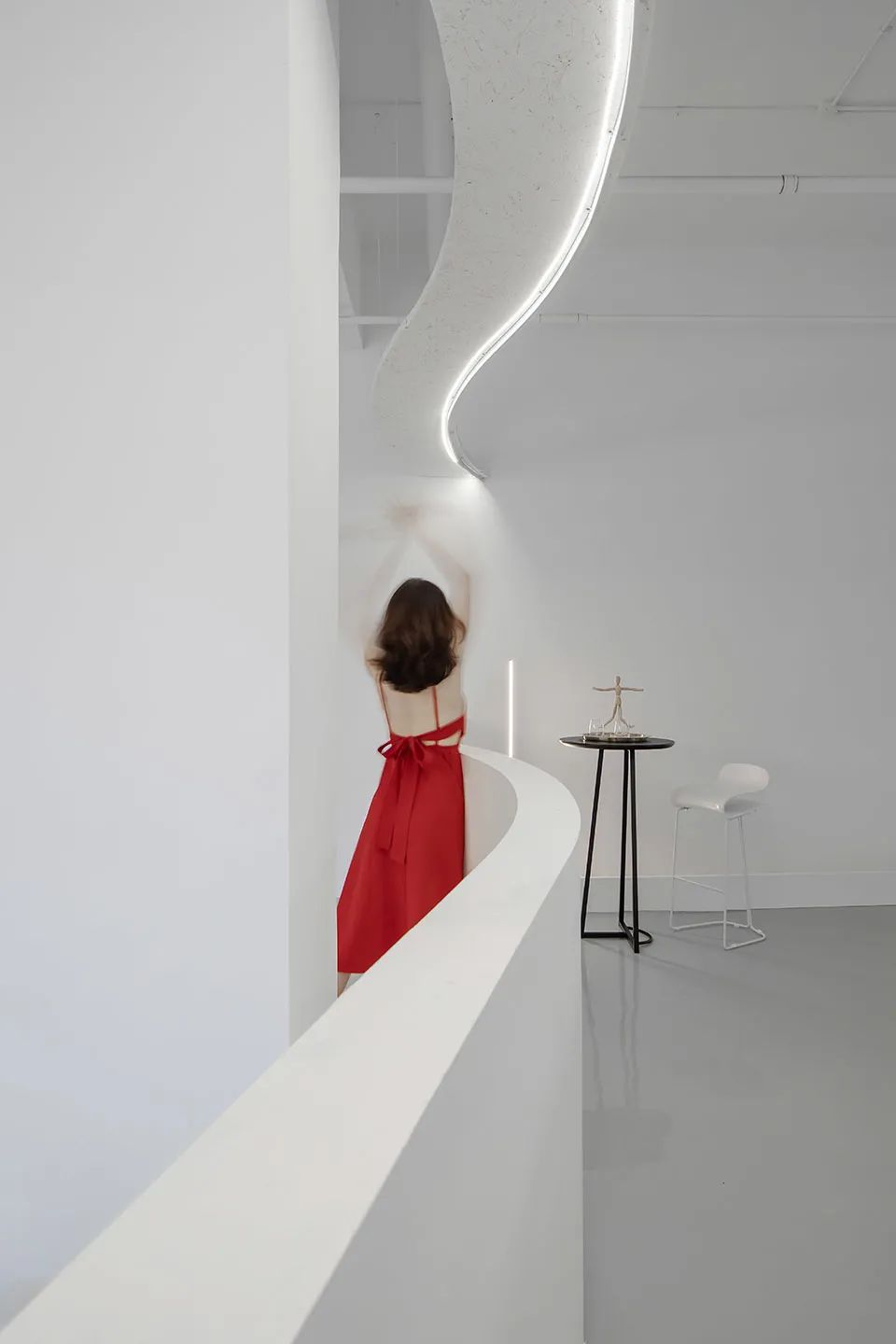 空间时刻处于混沌与清晰的动态,置身其中仿佛行进在流体中,给工作者和观展者一次反日常的感官体验。