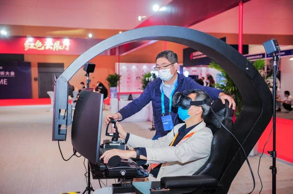 参观者正在体验飞行内容《壮志凌云》。来源:主办方供图