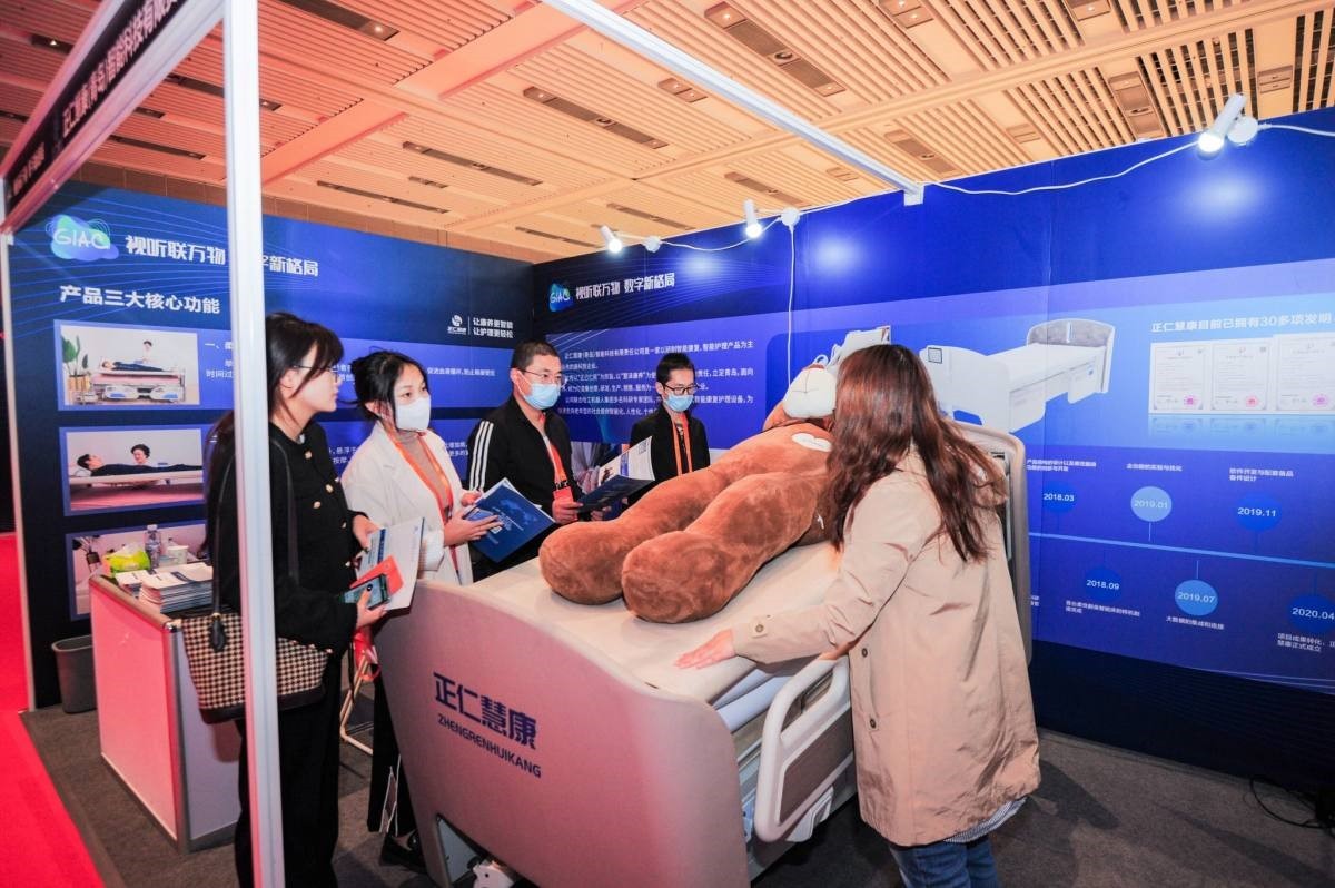 体验展上的一张柔性智能翻身床向人们展示了智能技术在医养领域的无限可能。这张床基于人床分离的结构设计和智能控制、监测技术,人性化、个性化、智能化三位一体,可显著改善患者卧床体验,防治并发症,提高康复效果,降低护理强度和成本。