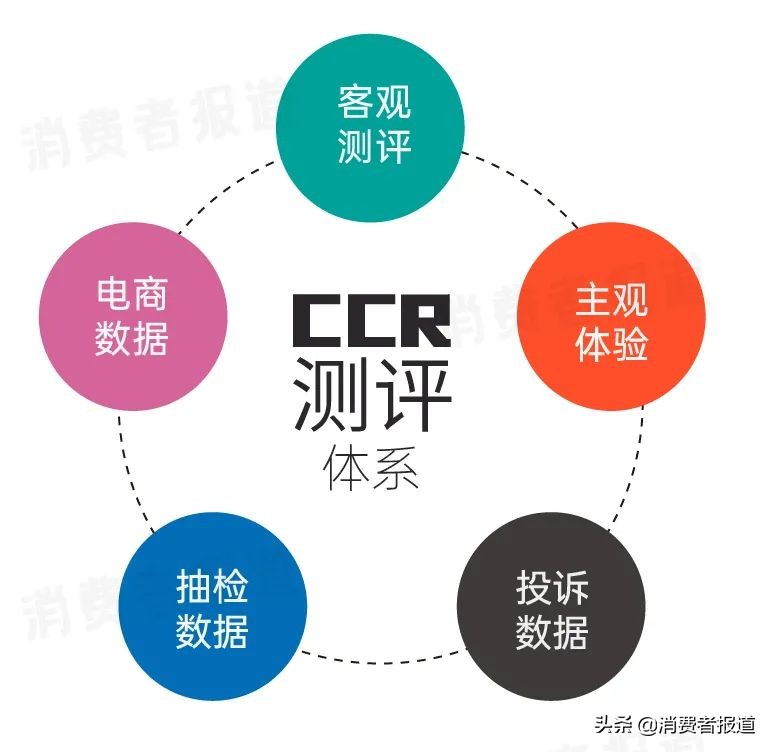 为了直观地反映产品的综合表现和质量差异,《消费者报道》自2018年起,建立了一套科学的CCR测评体系,从客观数据、主观体验、政府抽检、电商口碑和消费者投诉等5个方面多维度地评价参与对比测评的产品,评分范围为 0-10分之间。