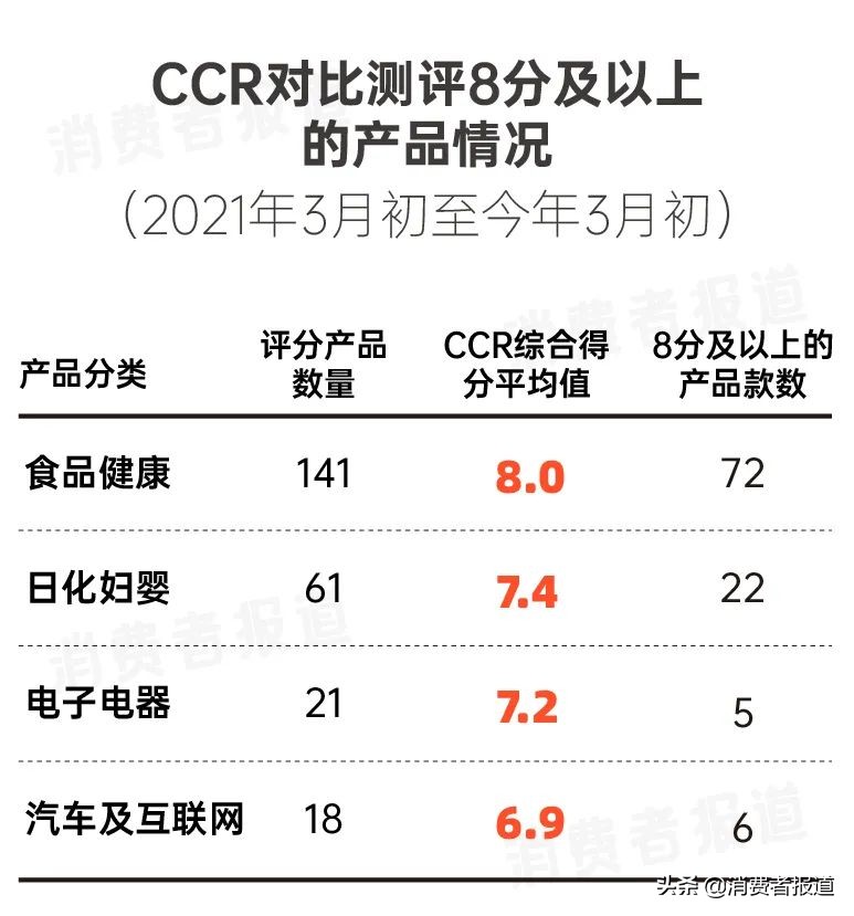 整体而言,除了产品达标率高以外,CCR综合评分较高的送检产品占比也较多。消费者对目前市面销售的品牌产品大可以放心。