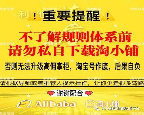 共享10万亿级社交新零售时代!警告:请勿私自操作和下载淘小铺,否则你将以消费者的身份永久绑定在官方后台,不能更改,永远不能享受官方推广员的奖励,永远享受不到团队佣金,永远不能招团队,永远不能享受团队利益,请根据导师或推荐人提示操作,谢谢配合!