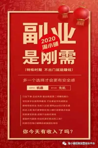 淘小铺这个赚钱的途径其实挺好,大部分人都是自己做自己赚钱。现在已经不是单打独斗时代了,而是要走团队模式系统培训方式,淘金联盟一键复制的系统,帮你解决一切后顾之忧,有很多这样的副业兼职平台,门槛也是相对较低,但是安全系数不高。不能长久赚钱,而阿里巴巴淘小铺不管你是在办公室,教室,厕所,还是在宿舍,都可以随操作,你赚不到的钱,别人可能很轻松就能赚到,同样的事情,不同的人来做,结局肯定是不一样的。当时,我和这个失业的女白领粉丝讲了这个淘小铺副业的详细操作方案之后,她竟然激动的拥抱了我,说赚到钱之后,要如何感谢我之类的等等,我当时告诉她:其实,赚到的钱都是你自己的付出和心血,是你时间的价值输出,是你应该得的,我只是为你做了一个指路的小灯泡而已,不用放在心上。所以,做好自己的副业被动持续收入,是很多人改变这种现状最好的选择。提高收入,不只为了解决温饱问题,更为了提高生活质量。全职是为了帮助别人实现梦想,副业是为了实现自己的梦想,更是为了可以永远不上班。想详细了解淘小铺这个项目的朋友请加淘小铺官方导师微信:3365557 详细了解一下吧!