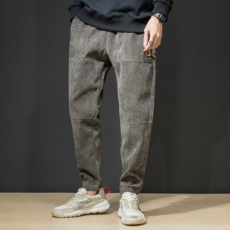 秋冬男士运动休闲裤长裤宽松修身束脚哈伦裤灯芯绒九分小脚裤子潮