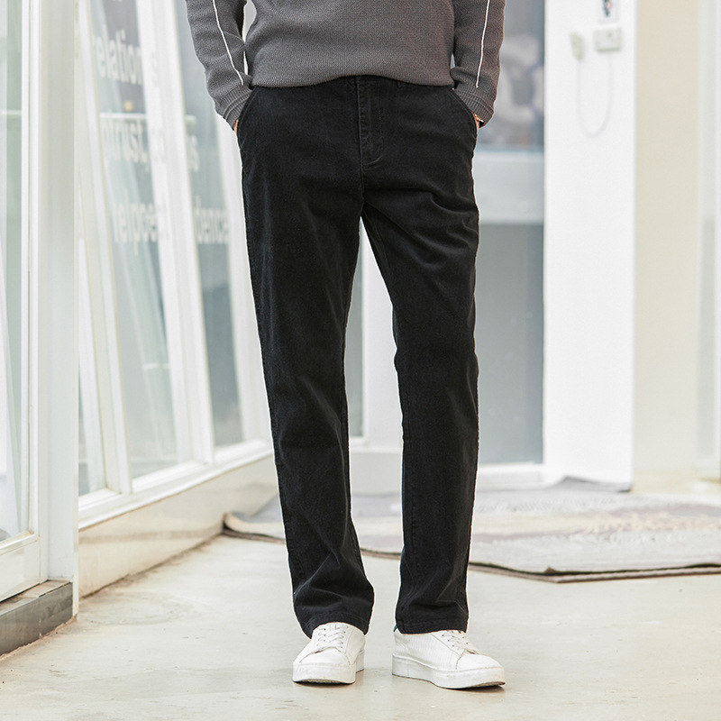 8073灯芯绒商务运动裤男宽松直筒休闲裤大码弹力青中年长裤子