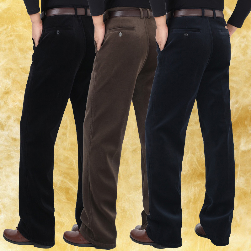 冬季男条绒裤灯芯绒商务休闲裤直筒宽松大码男裤子中老年加厚长裤