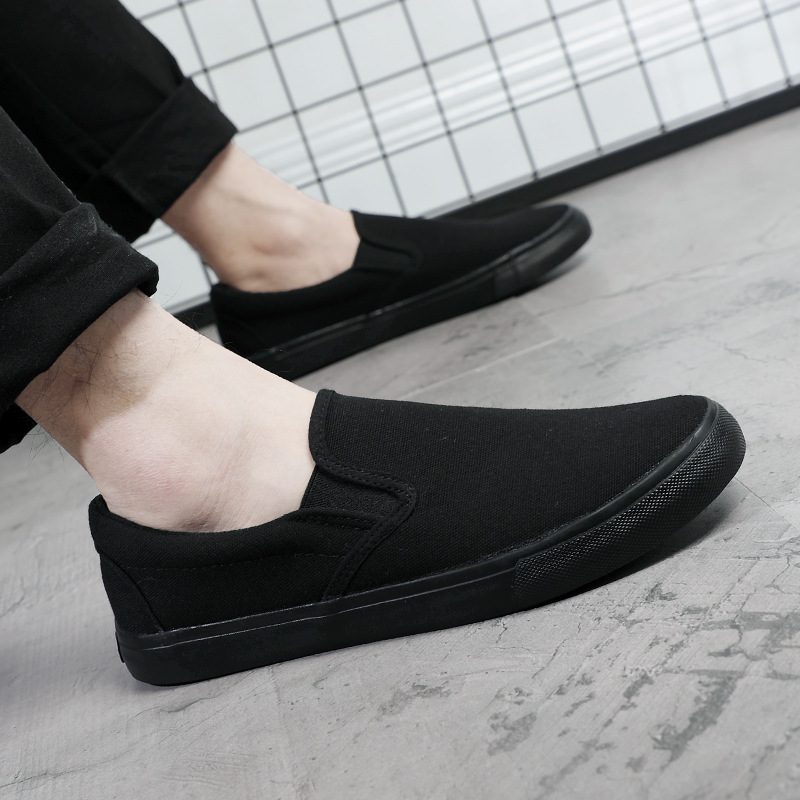 2019秋季潮款透气男鞋平底休闲鞋一脚蹬懒人帆布鞋男士低帮板鞋