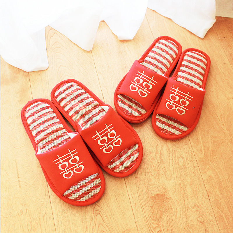批发婚庆拖鞋喜庆中式开口亚麻结婚情侣居家春夏红色新娘喜字布艺