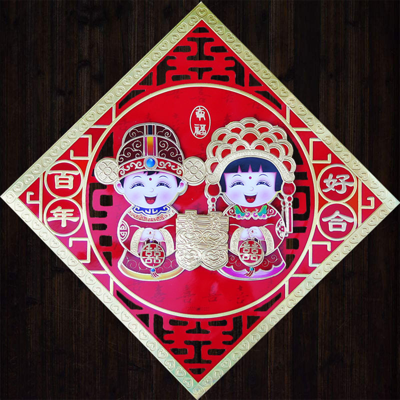 2张立体植绒结婚喜字大门贴纸墙贴婚礼年画婚房装饰厂家直销