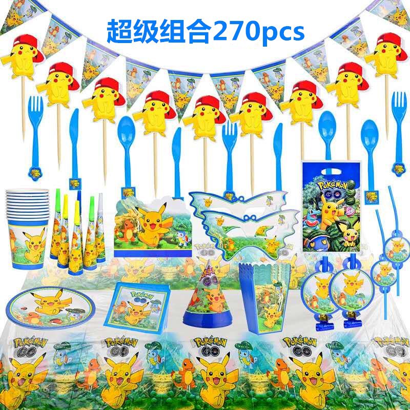 外贸热卖原版皮卡丘生日派对装扮用品神奇宝贝儿童聚会纸盘桌布