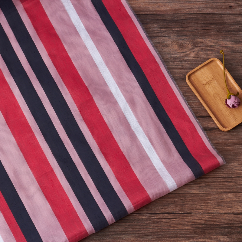 壹卷秀 棉麻色织布料2020春夏薄透粉色条子衬衣文艺服装面料02887