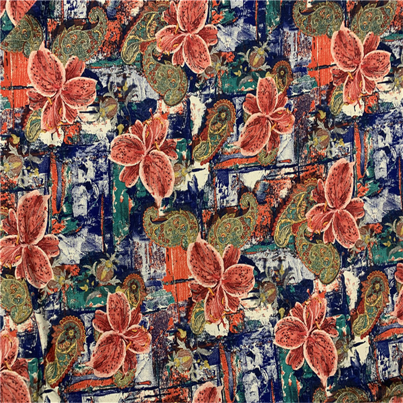 现货中老年女印花竹节棉布料棉麻睡衣布料40人造棉 雕印棉绸布料