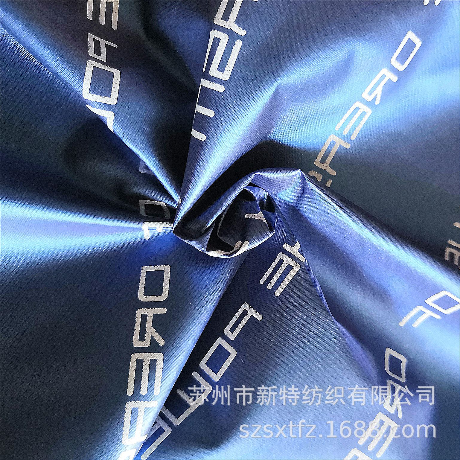 新款服装羽绒服面料 50D春亚纺字母离型纸转移印花布料现货