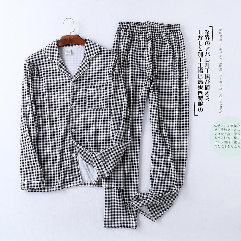 2021新款 外贸男士针织棉家居服 亲肤棉毛面料 睡衣套装 格子款