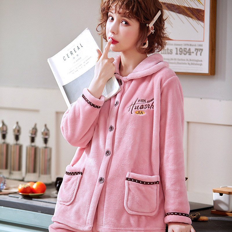 珊瑚绒睡衣女春秋大码可外穿加厚家居服韩版秋冬款法兰绒可爱套装