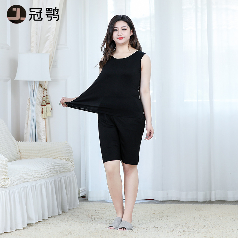 睡衣女空调服冰丝背心网红薄款莫代尔面料两件套装家居服加肥加大
