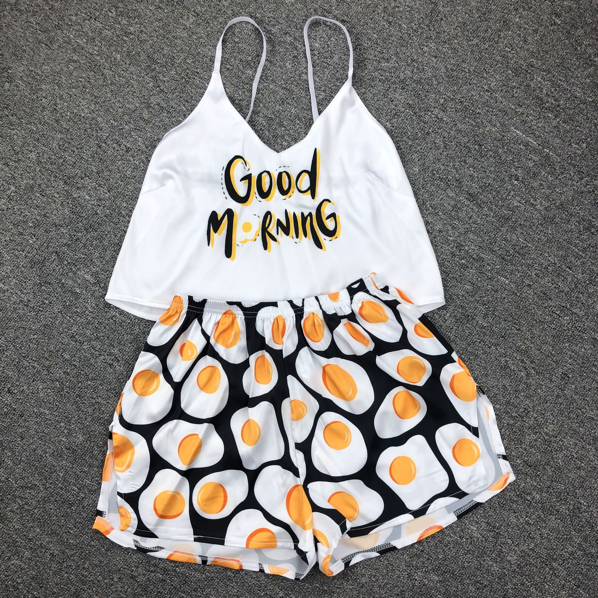 外贸性感色丁吊带背心短裤睡衣两件套装女缎面冰丝绸V领家居服夏