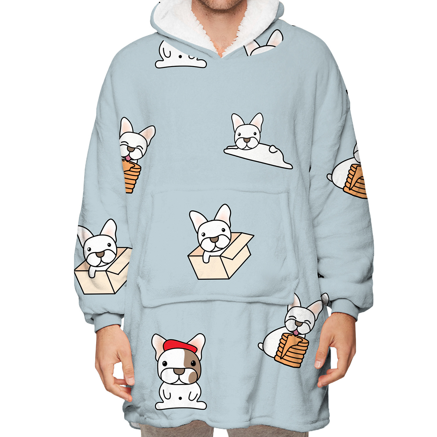 跨境家居服3D数码印花秋冬保暖可穿植棉绒毯子亲子装连帽卫衣