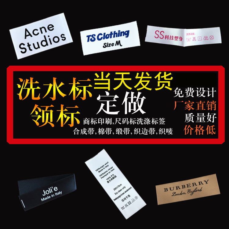 水洗标 洗水标定制 服装洗水标签 洗水唛订做 洗涤标志 布标印刷