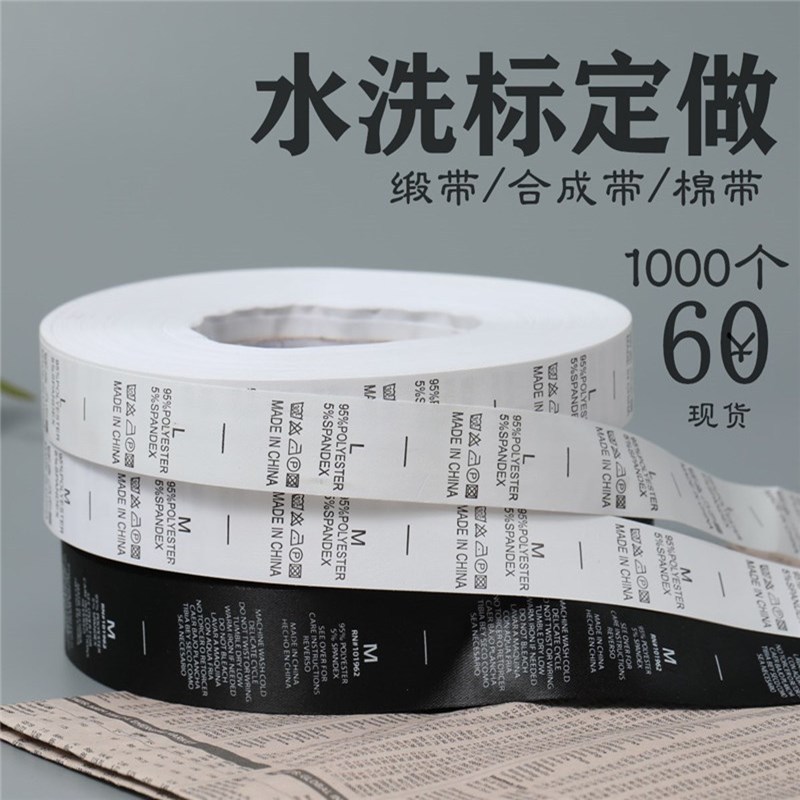 水洗标定做服装丝印水洗唛定制合成带洗水唛缎带印唛衣服商标现货