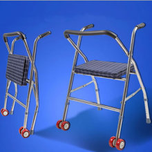 厂家直销批发不锈钢老人折叠带轮带坐助行器助步器医疗器械拐杖