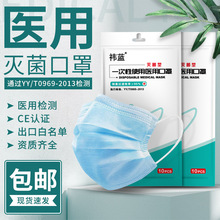 祎蓝成人医用口罩一次性蓝色三层防护灭菌熔喷布非外科口罩10只装